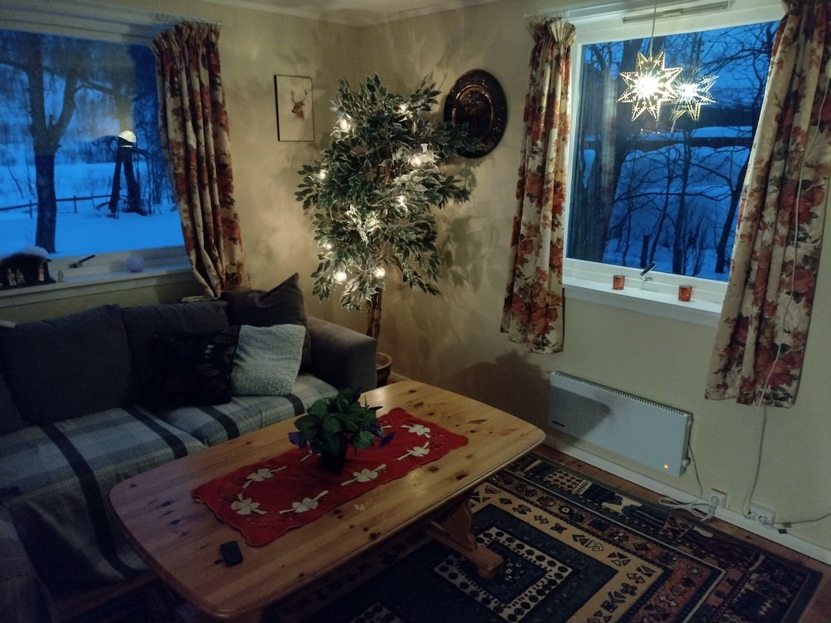 Large apartment with 4 bedrooms and 2 bathrooms, good standard. The kitchen is well-equipped for cooking. It includes linens, towels, various soaps and possibility to wash clothes. The place is perfect for northern lights watching and nature experiences with proximity to the Lyngen alps. The site is located directly below the northern light belt with little light pollution, 50 minutes from Tromsø. It is recommended to rent a car and we offer a discount deal at Hertz.