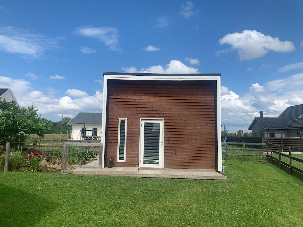 Bring the whole family to this amazing place with lots of room for fun. Kitchen, bathroom, living room and two bedrooms. Bedroom 1 has a double bed. Bedroom 2 has two single beds. The bedrooms are upstairs and have no doors, but they are open rooms. The house is located on our property, about 10 meters from our home but has its own balcony and garden. The house is within walking distance of Åstorp city center, from Åstorp city center you can get to Helsingborg by train in 20 minutes.