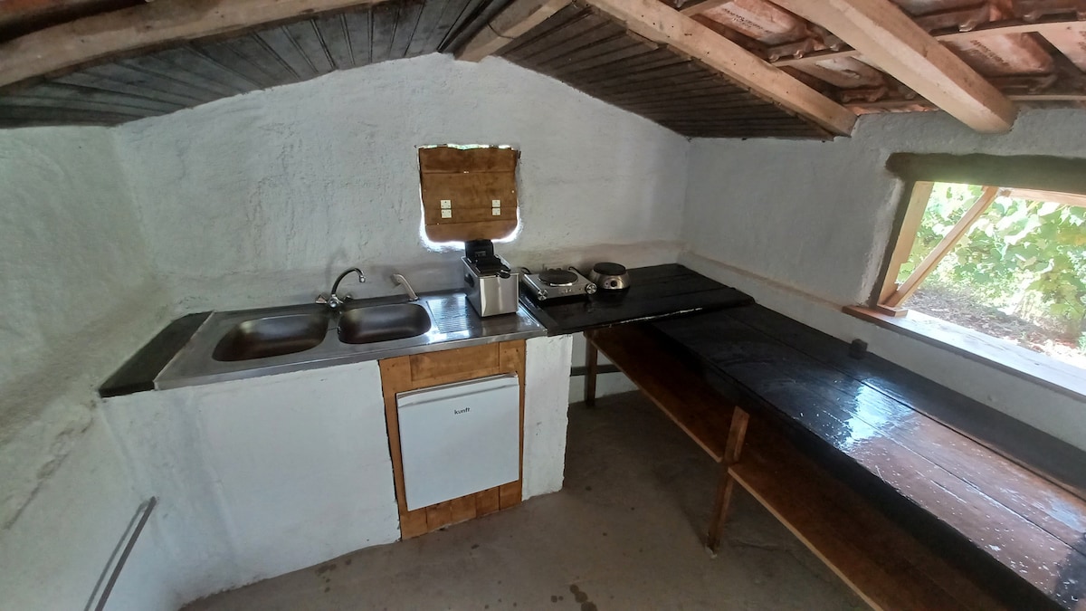 The guest room in Casa da Ribeira de Cima, an authentic country house, is finished with ecological materials that are in balance with the natural environment. The guest room with private bathroom is adjacent to the owners' house, but has its own entrance with private terrace and fully equipped private outdoor kitchen. The site is surrounded by nature, between fields and forests, 500 m from the village. From the terrace, you have a view of the mountains of the Serra do Alvão. Peace and quiet guaranteed!