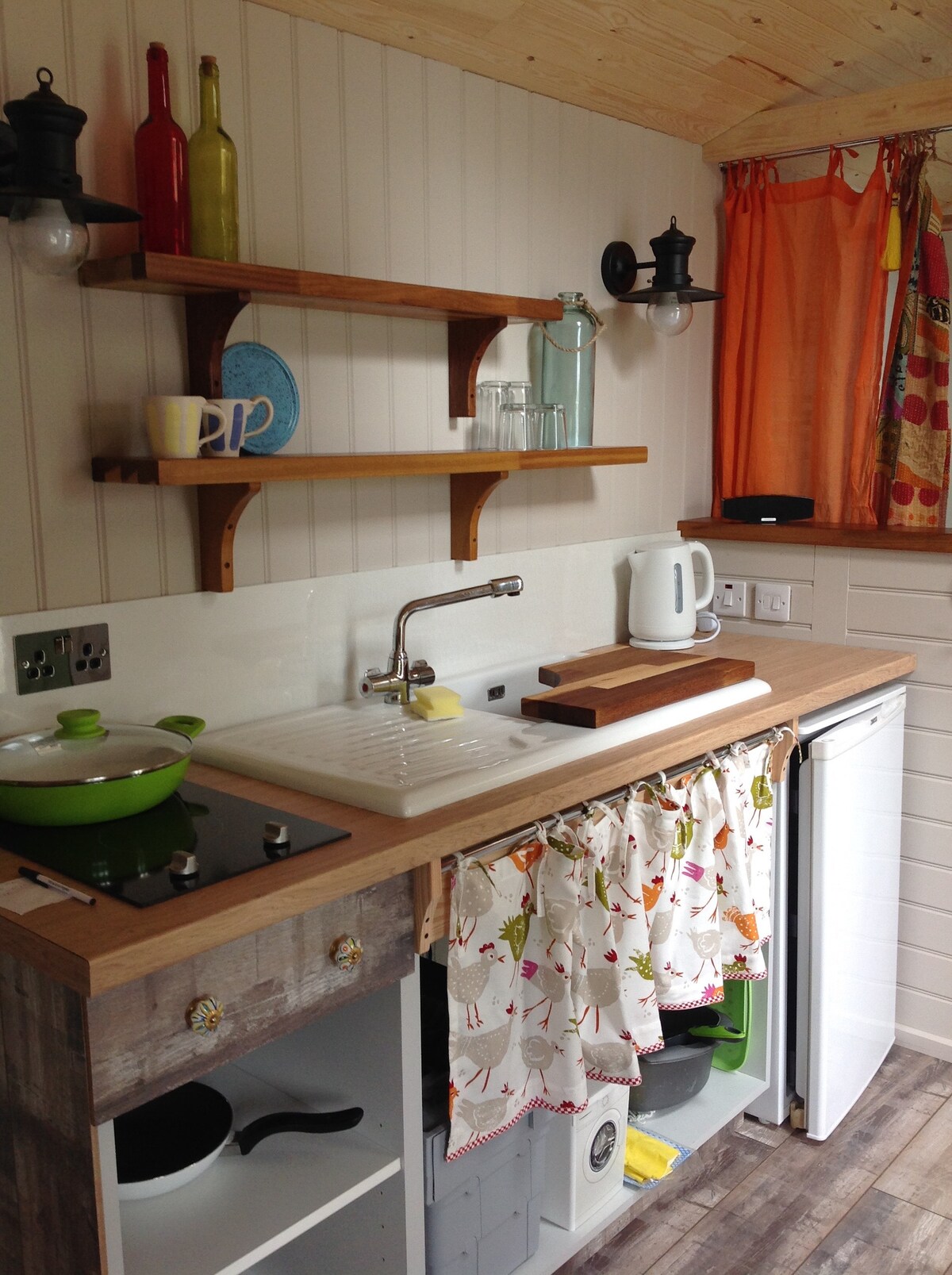 This lovely holiday lodge is a perfect place to relax and offers a fully equipped kitchen, 2 tv’s and internet access. It has private car parking and an enclosed garden (secure for one well-behaved dog). There’s one bedroom (completely separate from the additional sofa bed in the living area) so can sleep up to 4. The nicely designed bathroom has a shower bath and is situated between the 2 sleeping areas, so excellent for privacy. It’s walking distance to cafes, restaurants & shops