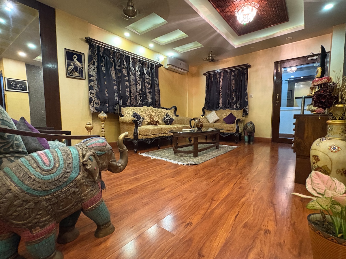 Our house is located in a peaceful neighborhood in South Kolkata is steps from the Lakes and surrounded by cafés, boutiques, and restaurants. The spacious ground-floor apartment includes 2 AC bedrooms, a third converted bedroom, sitting area, dining space, kitchen, balcony, and 2 bathrooms. It's adorned with vintage tiles that reflect old-world Calcutta charm.