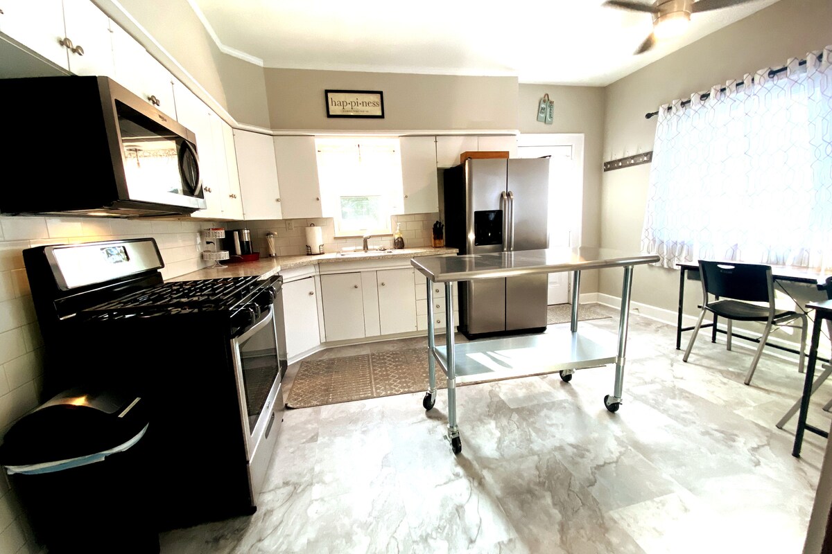 The residence features an all-white interior, subtle contrasting grays, an array of textures and motifs, wood accents, chic furnishings, a shaded front porch & backyard seating with a fire pit. There are two twin sofa beds in living room, and as needed, we can set up a twin roll-away in the bedroom with the king bed. We can also put a twin air bed in the dinning area! This 1923 HISTORIC 1/2 double is in a very quiet neighborhood & has been recently remodeled top to bottom. All of the furnishings, fixtures, appliances, paint, flooring & porches are BRAND NEW. It's comfortable, cozy & quaint.....with updates galore! It features 3 bedrooms (King, Queen, & Queen size beds) and 2 full baths. The living room has a 54 inch TV, two twin sleeper sofas, seating for 6, and a rustic ceiling fan. (Upon request, additional sleeping arrangements can be made for 2 more people.) The spacious dining room has a large butcher block table with lots of seating. The brand new kitchen is fully equipped for your stay. It has stainless appliances, quartz & butcher block countertops and barstool seating. The house is WiFi equipped with 3 TV sets. OUTSIDE The covered front porch allows great views of the quiet neighborhood’s green space & comfortable seating for 4. Out back, we have a charcoal grill, a table, seating for 6 & a fire pit w/firewood. Off street parking is available— as well as lots of off-street parking, that is well-lit in a family centered neighborhood. We think you will enjoy our newly-restored retreat & all it has to offer. Please don't hesitate to contact us if you have questions. --Toby & Bunny Ambrose --3 bedrooms (queen, queen, & king beds --2 full bathrooms w/blow dryers, shampoo, conditioner, body wash, towels & washcloths --A comfortable living room that seats 8. --A spacious dining room table that easily seats 10. --A full kitchen with stainless appliances, a microwave, gas cooktop, a filtered H2O dispenser, a keurig coffee maker w/coffee pods, tea/sugar, basic spices/cooking spray/olive oil, a toaster, crockpot, blender & all essential kitchen items to make meals. --3 bar stools for seating at the counter. --A covered front porch with seating. --A fire pit out back with seating & firewood. --2 off street parking spots behind the house . RE: PARKING 1). Your 2 reserved spots are located farthest to the right out back, closest to the concrete wall & adjoining steps. Please pull in nose first. 2). Should you require more parking, additional spots are usually easily found out front and on the side of the house, as the house is positioned on a well lit corner lot. 3). We have never had issues, but please remember to proactively lock the house, your vehicles & obviously not leave any valuables in sight We are available when needed by calling our cell phones or texting. The home is located in historic Clintonville. Convenient & close to all major highways, Mapfre Stadium, The Ohio State University, The Columbus Convention Center, Nationwide Arena, the Short North, German Village, concert venues, art, culture, parks & restaurants. Quite time is 10:00 pm on week days and 11:00 pm on weekends. No loud music, please be respectful. This is a duplex, and it is a quite neighborhood. The location could not be better! Very close to Mapfre Stadium, The Ohio State Campus, The Horseshoe and Schottenstein Center, Nationwide Arena, Huntington Park, Downtown Columbus & The Riverfront, German Village, The Short North, the Columbus Convention Center, The Ohio State Fairgrounds, The Columbus Zoo & Zoombezi Bay, several major highways & the Columbus Airport. 12 minutes (9 miles) to the Columbus International Airport (CMH) 9 minutes (5 miles) to the Greater Columbus Convention Center 1.3 miles (6 minutes) to The Ohio State University .09 miles from Mapfre Stadium 1.7 miles (5 minutes) Ohio Expo & Ohio State Fairgrounds 5.7 miles (10 minutes) from COSI. (Center of Science & Industry) 24 minutes (18 miles) from The Columbus Zoo & Zoombezi Bay (water park) We are very proud to be recognized as SuperHosts with Air BnB. We have 3 other listings on Air BnB. Check out our links to the other locations. 3 are in Cincinnati & 1 is in Columbus,Oh Columbus, Ohio https://abnb.me/EVmg/9VwaDVuefK Cincinnati, Ohio https://abnb.me/EVmg/uBcI4NQtbK https://abnb.me/EVmg/99CkILaubK https://abnb.me/EVmg/gXhZp2cubK Close to all major hospitals, downtown, OSU, the Short North & German Village. We are very proud to be recognized as SuperHosts with Air BnB. We have 3 other listings on Air BnB. Check out our links to the other locations. (3 are in Cincinnati & 1 is in Columbus,Oh)