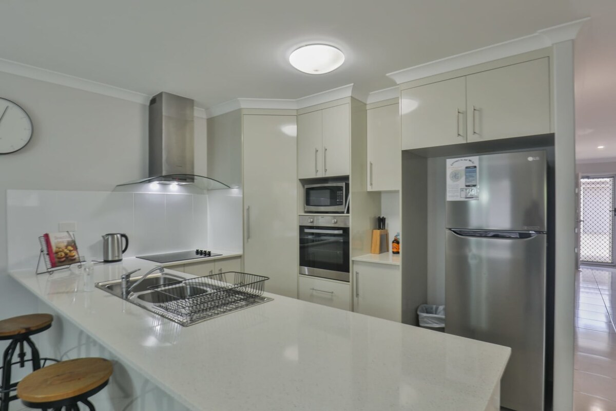 This beautifully presented, open plan, low set, 3 bedroom, 2 bathroom luxury villa is sure to impress. Its fresh modern styling creates a joyful space to relax and enjoy a home away from home. There is free Unlimited WIFI, Smart TV's with Netflix & Disney+, incredible rainfall showers, secure parking and the property is also pet friendly (on application). You can even order gourmet and pampering hampers for your arrival!