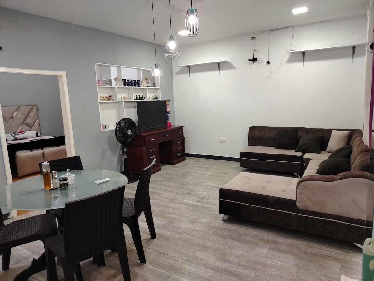 Ideal for couples, families or travelers looking for comfort and privacy. This modern and cozy apartment offers a master bedroom with a private bathroom, closet, desk and TV. It also has a second room with a double bed and sofa, perfect for small groups or couples who want a large space without feeling overwhelmed. The kitchen is fully equipped and has air conditioning, Wi-Fi, an indoor hammock and a garage. Located near Marco Vinicio Iza Hospital.