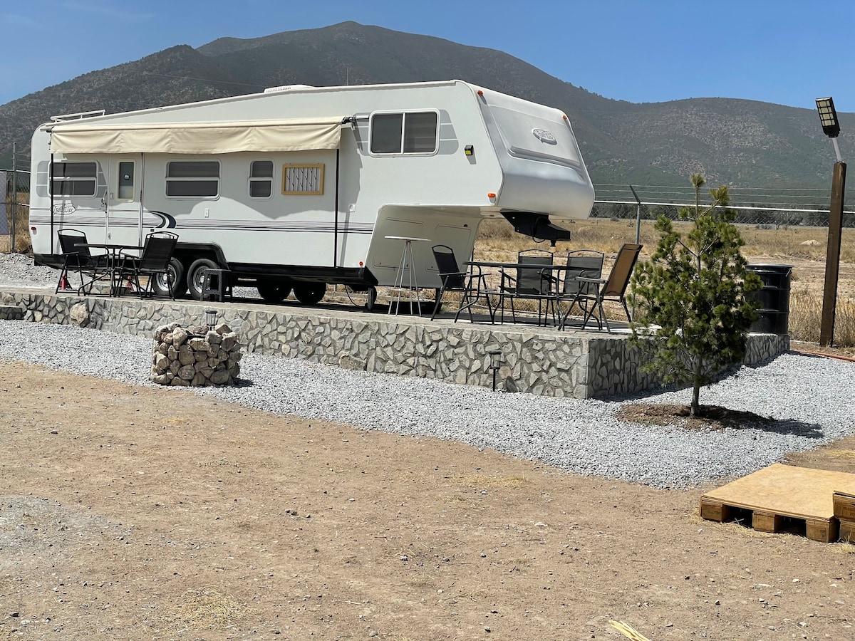 Experience the unforgettable experience of sleeping in a Mobile Home in the middle of the forest with the lullaby of the night sounds of the forest and having all the comforts of a Suite, in Camping with Glamor, you can enjoy nature and the mountains in an original and unique way, enjoy the privacy and security within this exclusive family property, fully fenced and just 5 minutes from the picturesque village of Huachichil and very close to vineyards.