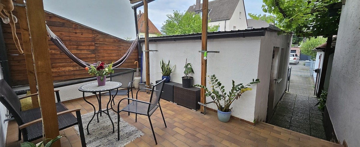 The lovingly furnished, newly designed and very well-equipped apartment is located in a building, that is separated from the main house. You live in a very quiet location on the southern outskirt of Nuremberg. By public transport (bus / subway) you can get to the main railway station in 25 minutes without any stress. The bus stop is only a few minutes walk away. The easiest way to reach the Nuremberg exhibition center is by car in only 20 minutes.