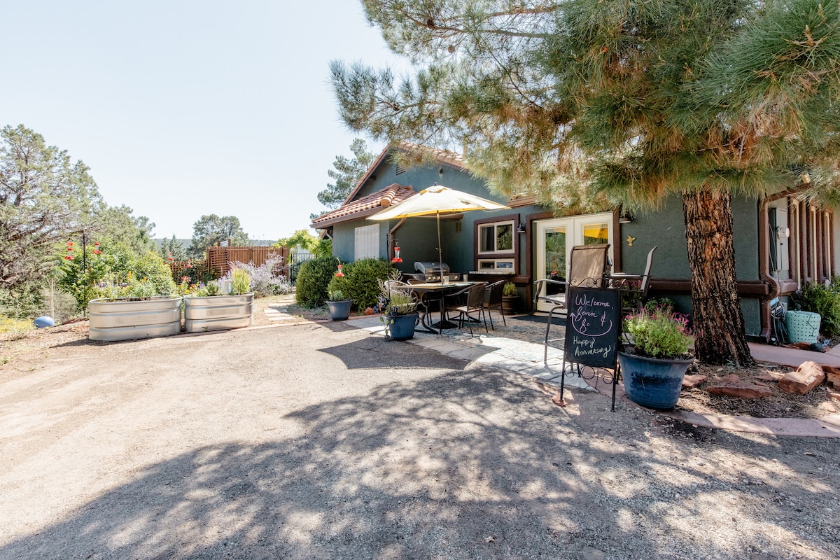 A quiet, bright, spotless studio in the CENTER of Sedona! Walk to trailheads, Sedona Shuttle, restaurants, Posse Grounds events park. King bed and Spa shower gets rave reviews. Fast Wi-Fi, smart TV, washer/dryer, kitchenette, coffee selections, Aveda products. Upgrades galore. Park your car just steps from guest patio. Easy self-check-in. Organic and fragrance-free products. Airport Mesa trail 5 min • Soldiers Pass Trail 7min • walk to Whole Foods & pickleball courts. Hummingbirds up close!