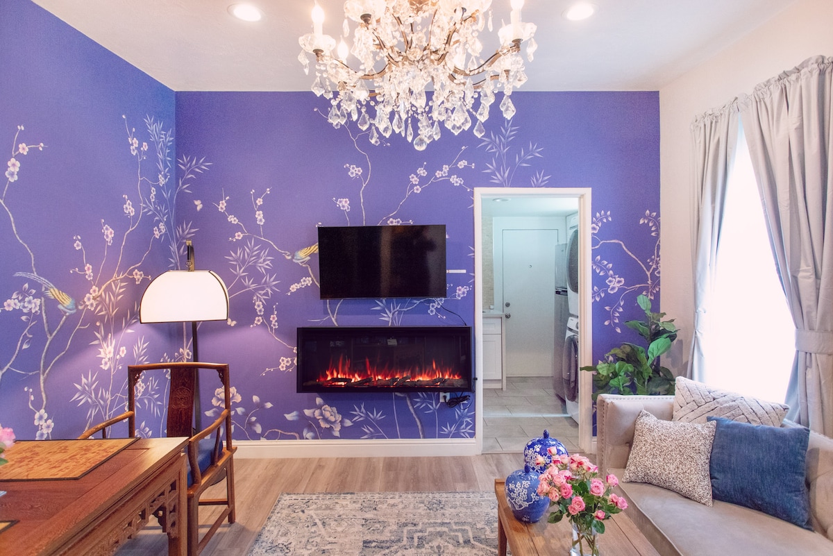 Artistic Cozy Getaway with Fireplace & Vintage Tub