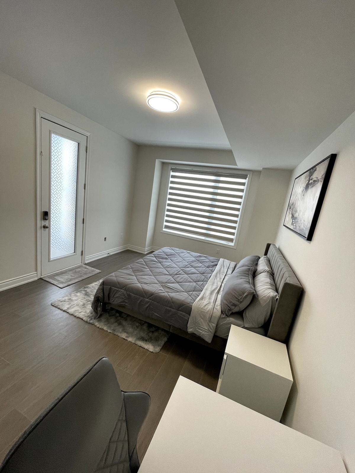 Welcome to our lovely private basement apartment in beautiful Oakville — just 45 minutes from downtown Toronto and 35 minutes from Pearson Airport. The home is conveniently located near Oakville Trafalgar Hospital and several shopping plazas. Enjoy a newly furnished one-bedroom basement apartment with a private entrance and self check-in for your convenience. The unit is clean, bright, and fully equipped for both short and extended stays.
