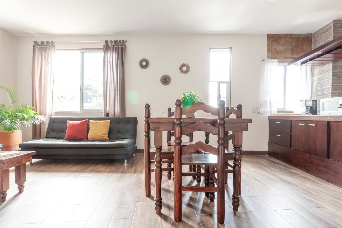 Just 4 blocks from the Oaxaca Convention Center, an incredible apartment for rest and home office (500Mbps) located on the ground floor, it has 2 bedrooms and 1 full bathroom, equipped with a kitchen-dining room to enjoy your food and a terrace where you can relax. It is located 20 minutes walk from downtown Oaxaca, very close to the sports center if you want to exercise and 2 blocks from the local market. It has parking and is pet-friendly!