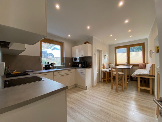 Our apartment is built in 2016 and we loved it to design the rooms, the equipment and the decoration. It´s based on the ground floor of our house and has an seperate entrance, an extra room for skies/hiking shoes, an extra entrance and a directly conecting to the terasse and the garden. The appartement is fully equipped and the overview to the beautiful mountains around you can enjoy sitting on the couch :) Just try and test the "homy" feeling in our house...