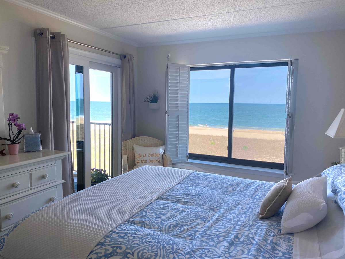 Wake up to the sound of the waves crashing outside your window and finish off your days relaxing on the private balcony as you watch the moon rise over the ocean. Come find your serenity by the sea in our modern oceanfront condo. Located in midtown Ocean City, you can keep your car parked in our dedicated spot and walk to many of the towns best restaurants, bars, and entertainment as well as the Convention Center and Performing Arts Center. Morning beach strolls and evening sips await :)