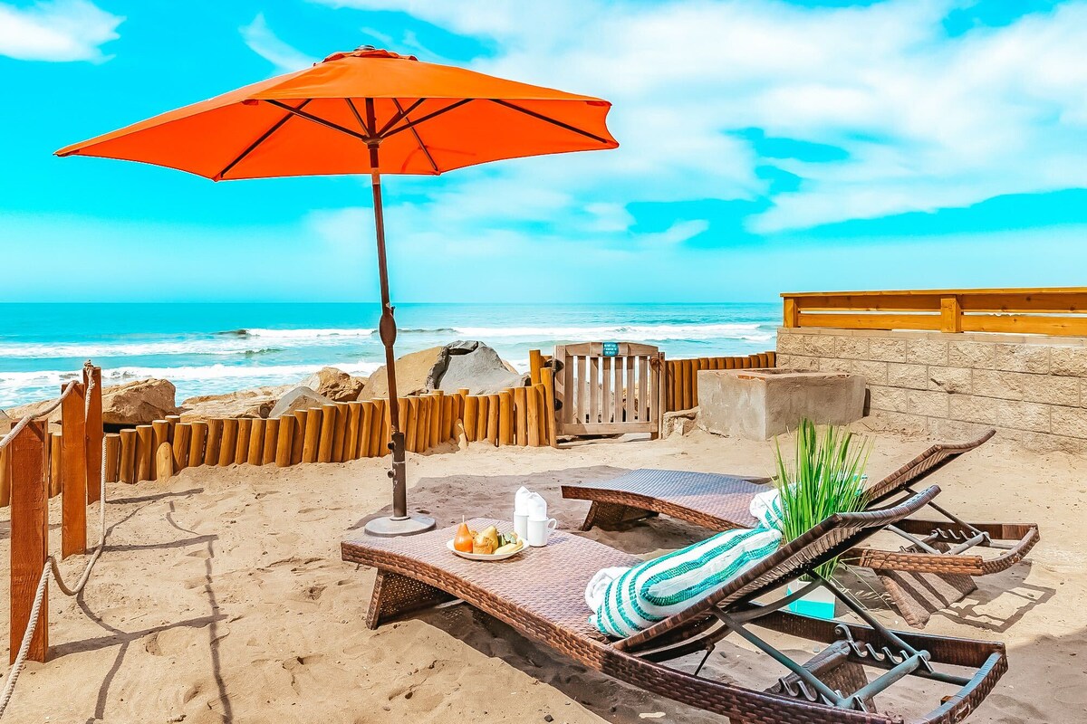 This 3 bedroom beachfront townhome is the ultimate way to enjoy the beach while sitting next to your own bon fire ring! Watch dolphins and surfers while you BBQ. This is the sand level unit so you are assured unobstructed ocean views and enjoyment! There is no street or sidewalk between you and the water! This 3-bedroom, 3 bath townhome is perfect for a family get-together. Located right on the water with its own sandy backyard