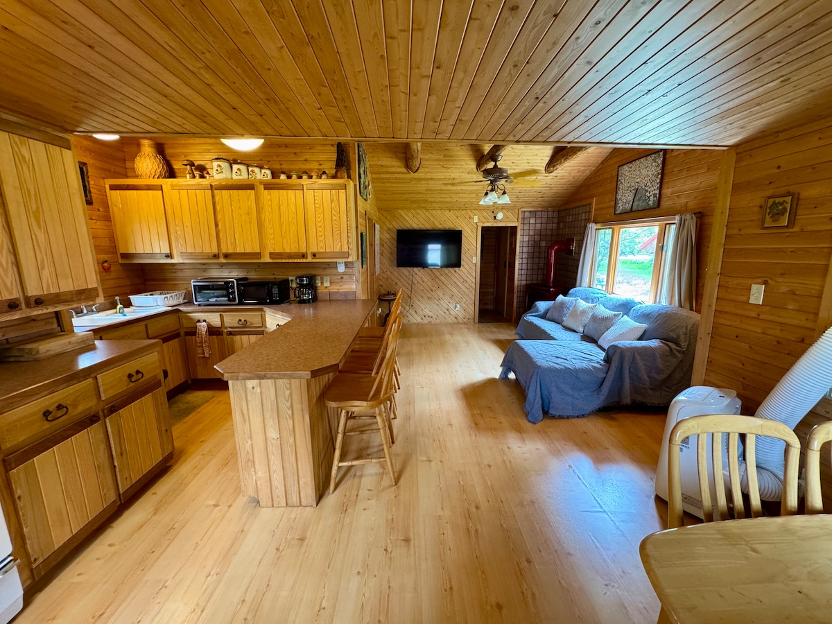 Unwind at our charming log cabin nestled among tall pines on beautiful Black Lake. Perfect for a romantic getaway, family vacation or a quiet escape with friends. Very close to hundreds of miles of snowmobile trails. Perfect location for ice fishing on Black Lake. This cabin offers the perfect mix of rustic charm and modern comfort. Ideal for couples, small families or anyone craving peace and nature, with all the amenities to relax in style. Only 150ft from lake access.