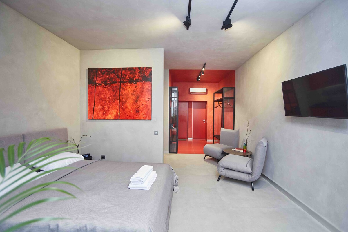 An apartment in a stylish mini hotel. Separate work area overlooking the French Boulevard and the sea. A lounge area and a separate, spacious bathroom. The room is autonomous. There is a mini kitchen and everything you need for a comfortable stay. Shared washing machine and iron. Delicious coffee and atmosphere.