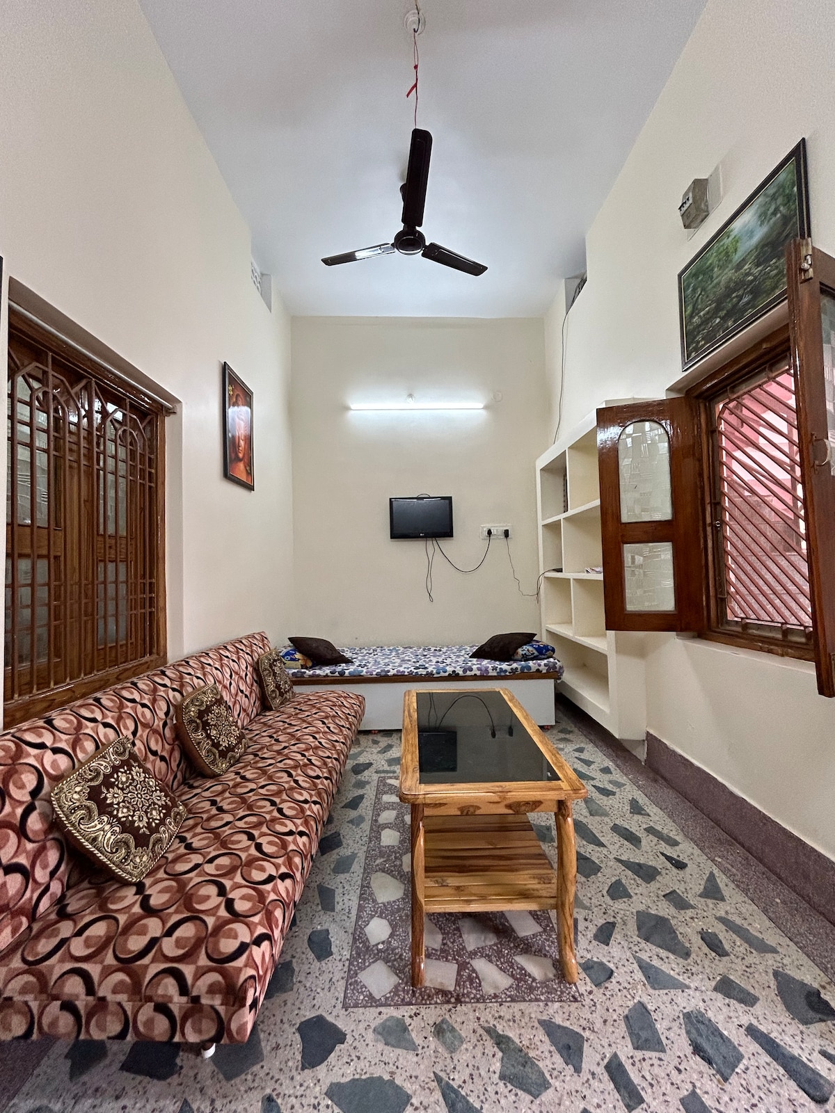 Welcome to our home! We’ve poured our hearts into making this 1BHK sanctuary a place where you can truly exhale. Located in the city center—just 10-15 minutes from everywhere you need to be—it’s designed to be your quiet "home away from home." You’ll love the lotus murals, hand painted artworks and the cozy, sun-drenched corners that give the space its soul. You will also get access to terrace. It’s simple, personal, and ready for your arrival. We can’t wait to host you in our humble abode!