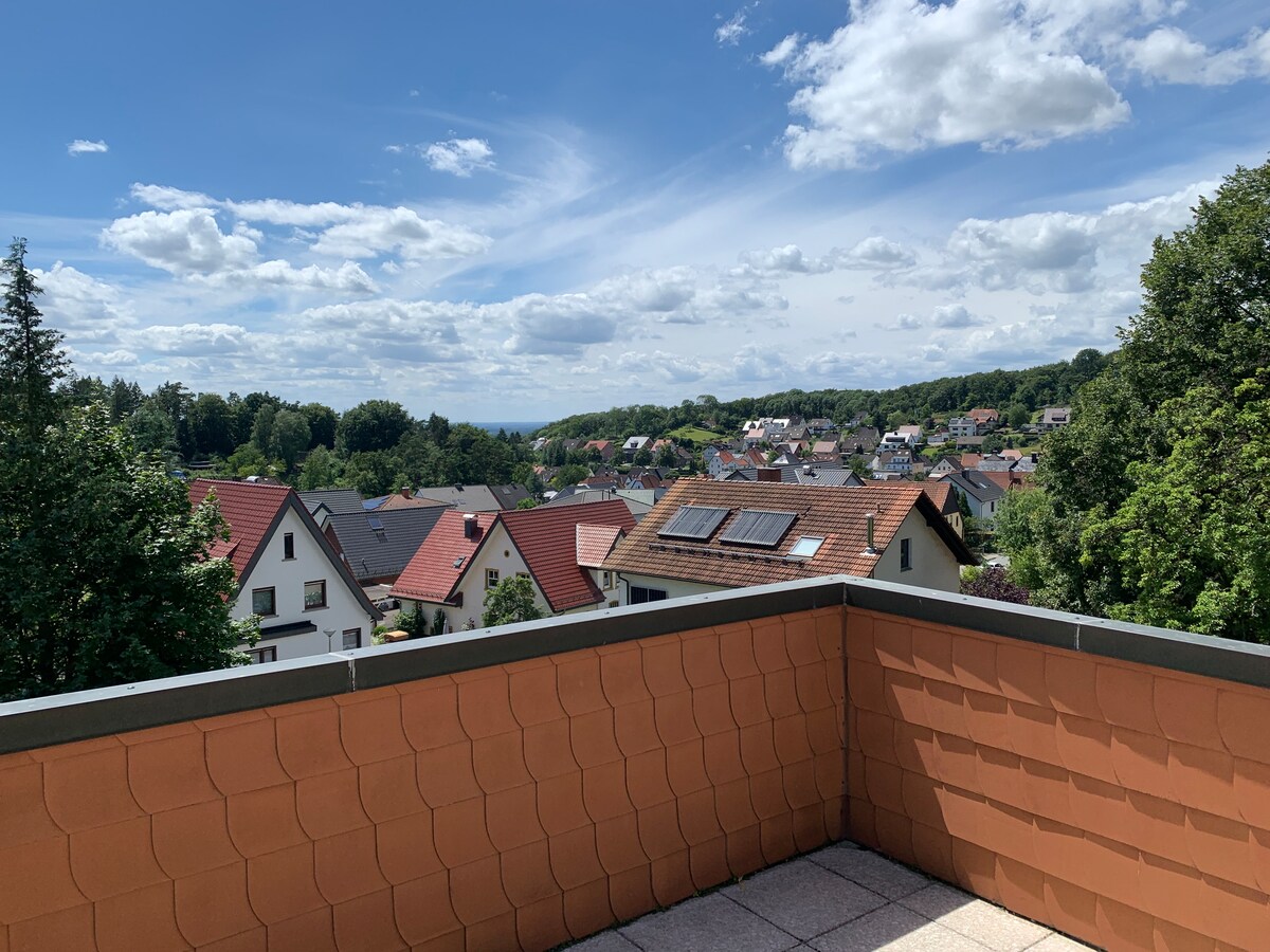 Comfortably developed Attic apartment (in a low-energy house) surrounded by greenery. Pleasantly cool in summer and cozy warm in winter. It is lovingly decorated... and... fully equipped. From the balcony you have a great view of a small stream, fields, meadows...and... 😊 .....our beautiful Teutoburg Forest.