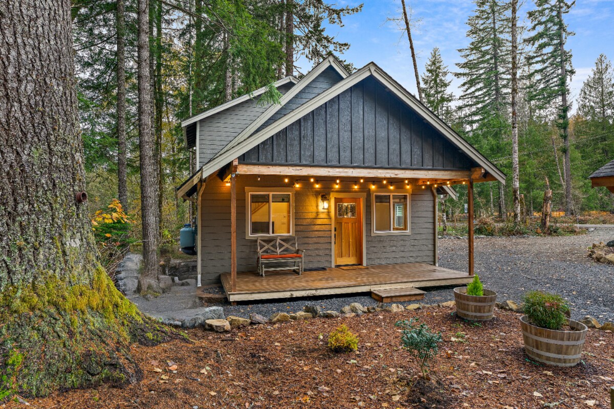 Take it easy at this unique and tranquil getaway. This rustic and cozy 2-bedroom, 1-bath vacation rental, all you'll need for a relaxing getaway is yourself and your loved ones (furry friends included). By day, explore breathtaking hikes in Mt. Rainier National Park, and come evening, treat sore legs to a rejuvenating soak in the cabin's private hot tub. This adorable cabin sits in a location that allows walkability to eateries and just steps to downtown Ashford and the Nisqually River.