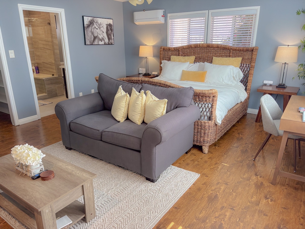 Casita Luna is a charming one-bedroom, one-bathroom attached guest suite. It’s a 10-min drive to downtown Ojai but within walking distance to the town of Meiners Oaks. The suite has a private entrance and backyard, providing more privacy where you can unwind and relax.