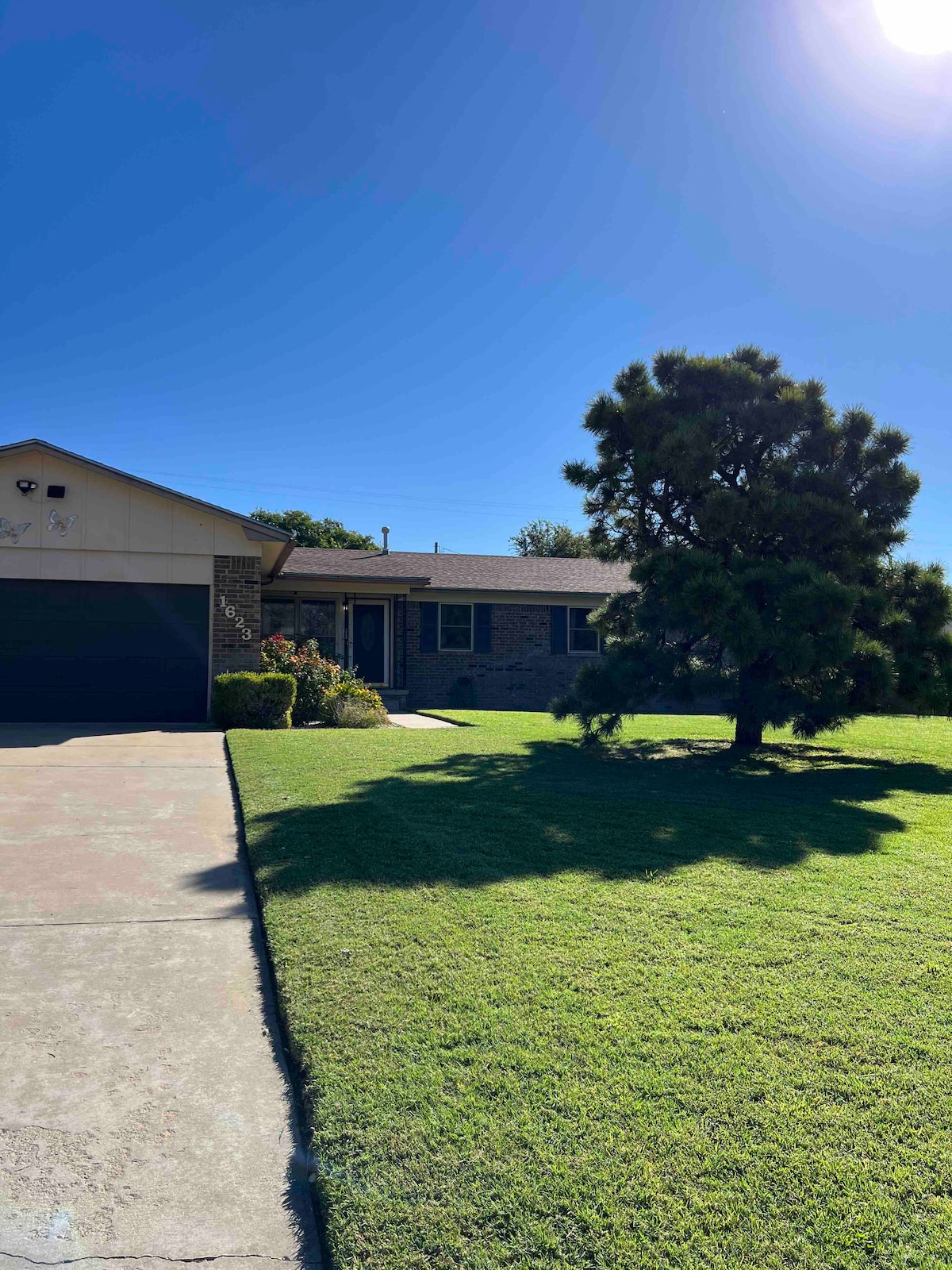 Centrally-located, completely updated throughout. Directly across the street from a park with a walking trail and basketball court. Comfortable beds, all with brand new mattresses. Keurig and Nespresso coffee maker with complementary coffee. Choose from a variety of breakfast items. Three bedrooms. The master has a king bed with an attached bath. Two more bedrooms have queen beds and share a hall bathroom. Fully fenced in yard and pet friendly. No smoking, no parties, no extra guests.