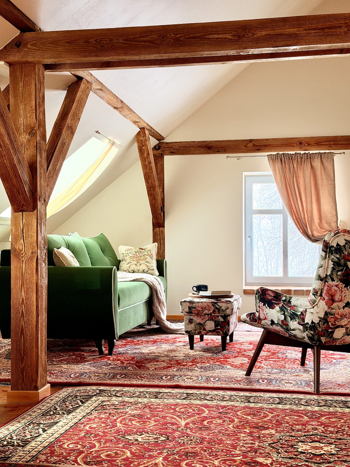 Siedlisko Konradówka – a place with a soul, where the asphalt ends and peace begins. A haven for those who want to break away from everyday noise. Surrounded by forests and fields, it delights with silence, fresh air and the authentic atmosphere of a rural idyll. The wooden buildings create the atmosphere of an old settlement, and at the same time offer the comforts we expect during our rest. It is a place for a book under a tree, tea by the fireplace and sunsets that remain in your memory.