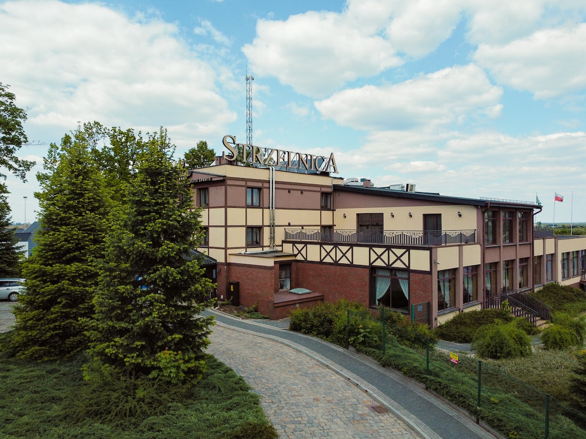Resort Strzelnica to wyjątkowe miejsce, położone w spokojnej okolicy, jest idealnym wyborem dla osób szukających relaksu, adrenaliny lub obu naraz. Na gości czekają komfortowe pokoje, restauracja z autorską kuchnią oraz przestrzeń stworzona do odpoczynku i wspólnego spędzania czasu. Naszym znakiem rozpoznawczym jest nowoczesna strzelnica oraz szeroka oferta atrakcji – gokarty, paintball, smart park z parkiem zabaw oraz strefa SPA. Zapraszamy – u nas odpoczynek nabiera nowego znaczenia.