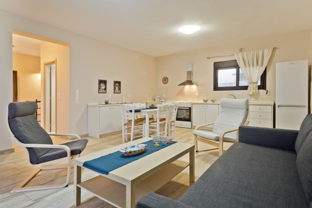 The accommodation is located just two minutes (walking) away from the center of Finiki, consists of a single room (double bed and couch), a private bathroom, a fully equipped kitchen, a washing machine, a dryer, a television, air-conditioning, free WiFi, and free private parking. Last but not least, we offer a private pool with whirlpool and private patio, ideal for relaxing under the Greek sun.