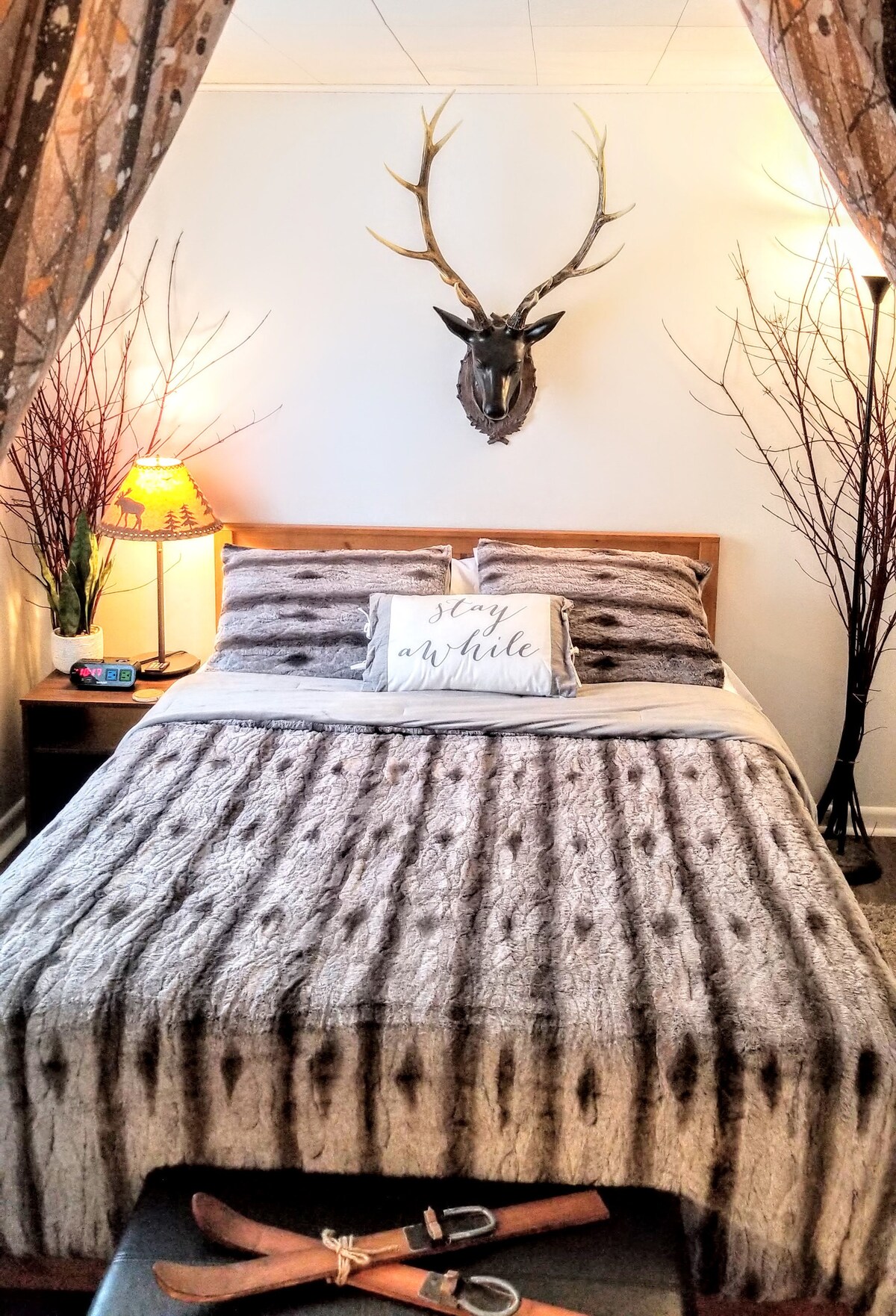 This rustic second floor studio apartment ideal for only a couple, offers a queen bed. This space may be small, but makes up with it, in it's "coziness". It is well appointed with attention to detail. Perfect for that romantic get-away weekend to make unforgettable memories. Take a breath, relax, and recharge. See the groomed trail from your window .