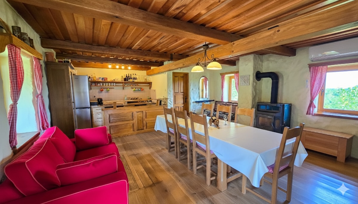 Escape to a private home with pool and sauna, secluded above Koprivnica – created for couples and families. Peaceful hillside retreat with pool and sauna A private hideaway above Koprivnica, perfect for relaxing in nature with stunning panoramic views. Secluded, yet just minutes from the town. Enjoy a large heated outdoor saltwater pool (3.5 × 7 m) or unwind in the Finnish sauna. Children will love the spacious yard with a treehouse, swings, and plenty of space to run and play.