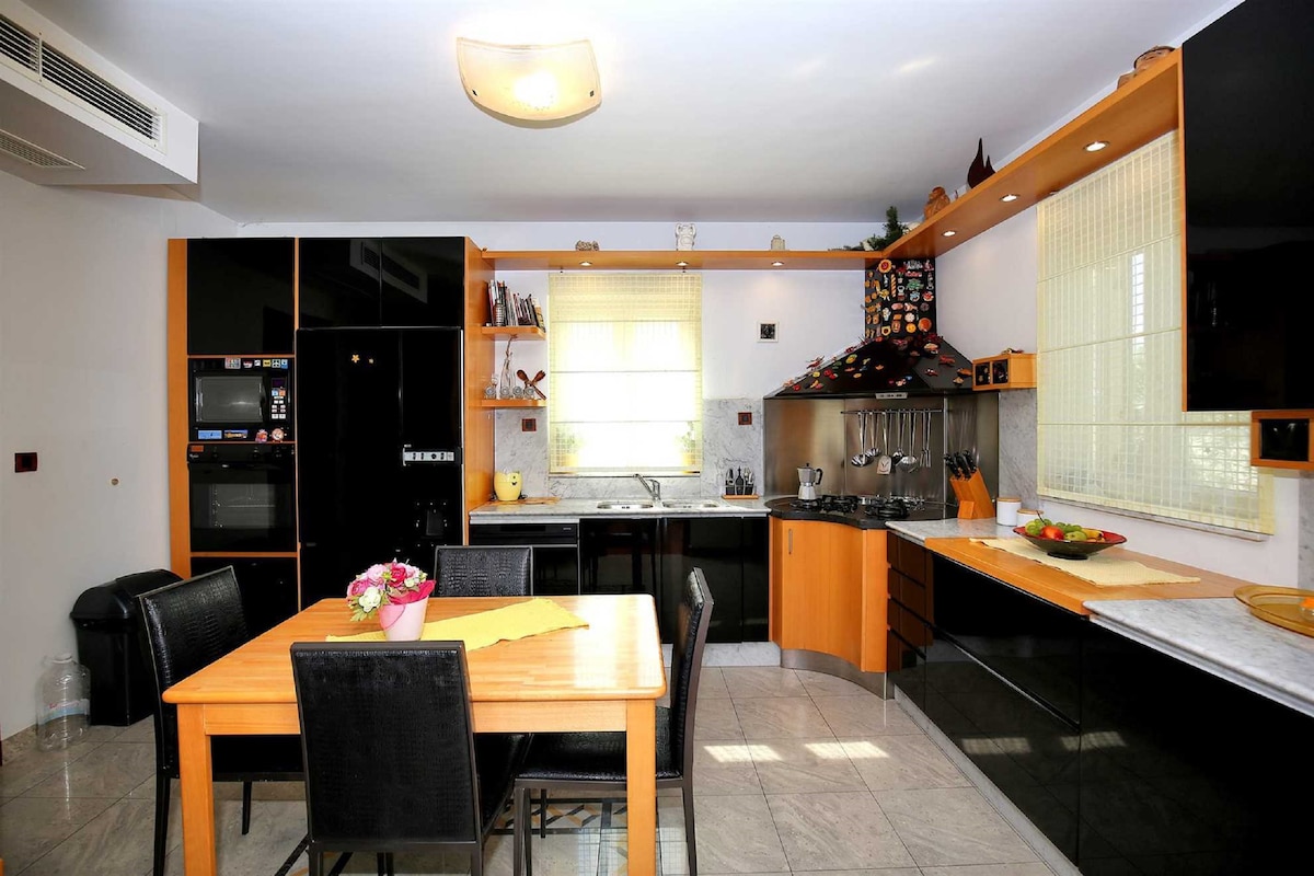 Apartment SPRING like our other apartments are part of Villa Majer, situated just 30-50 meters from the beach, on first floor of the villa. Apartment consist of 3 bedroom with queen size beds, dining room, 2 bathrooms, fully equipped kitchen, free internet, and parking. In the backyard you may find playground for children, training area, sauna, seperate house with full kitchen, barbecue, pool table, darts and football table. Bicycles are just waiting for you, all of it free of charge.