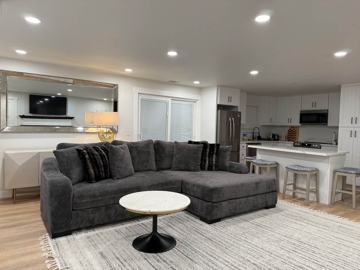 A true mother-in-law suite with its own entrance in a quiet and peaceful neighborhood. We will provide you with your own keyless entry code prior to your arrival. You also have the option to use the courtyard area right outside the private entrance, complete with comfortable seating and string lights. Off-street parking is provided for 1 car. Zero cleaning fees.