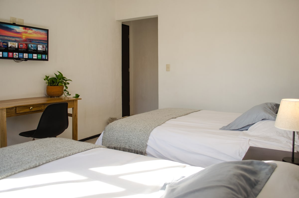 Relax, recharge your batteries, and feel at home in a modern, clean, tastefully furnished, safe accommodation in Morelia. The unit covers many amenities like TV, AC, Daily housekeeping, and Seating areas.