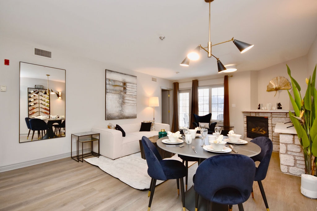 All-season Condominium in Horseshoe Valley. Spacious BR with ensuite. Living room with fireplace, dining space, sofa bed. Private balcony, kitchen with all the necessities. Walk to the new Vetta Nordic Spa. Skiing , golfing , hiking & biking trails, treetop trekking, restaurants, groceries- 5 min drive Barrie , Orillia , Wassaga beach are 20 min. drive( beach #3 is PET FRIENDLY) Please note: we are NOT able to accept cats!