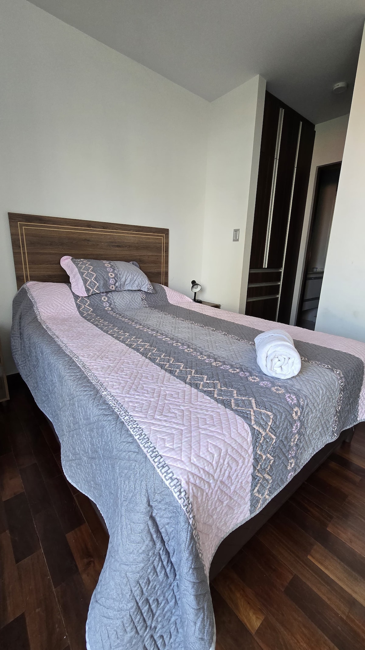 Relax in this quiet and elegant space. Exclusive studio apartment in a building, ideal for you if you're traveling alone or with someone for business, work or rest. The apartment has an elevator, parking, WiFi, Netflix. It is furnished and equipped with everything you need for a pleasant stay for 2 people. Located 8 minutes from downtown Cochabamba or Quillacollo. The space is not suitable for cooking or smoking. For stays longer than 5 days, cleaning is done at an additional charge.