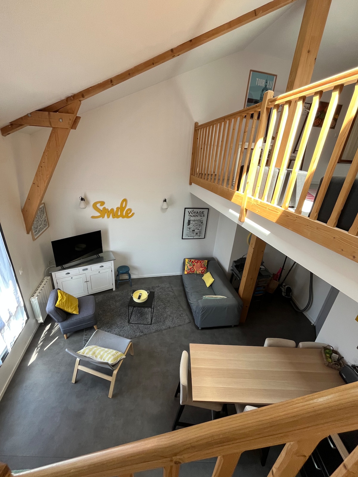 Very nice recent apartment, arranged and tastefully furnished: Kitchen open to the living room (TV), mezzanine with 2 beds for 2 people including 1 in an alcove allowing everyone to find privacy. Spacious bathroom. You will be at home, calm with all the services nearby.