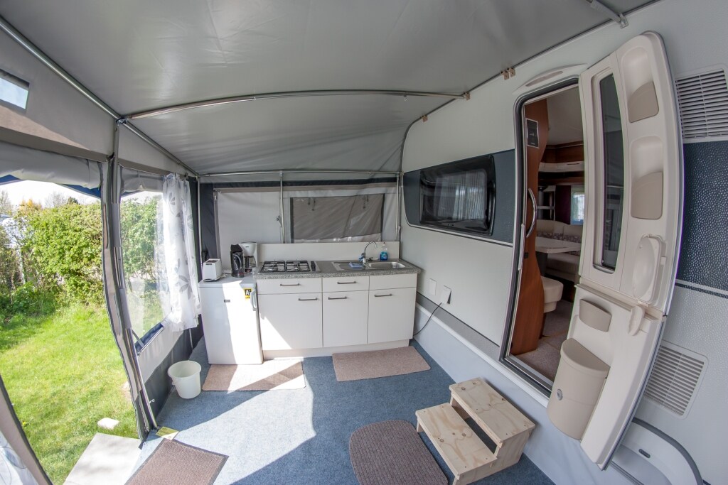 With our rental campers you can get to know the social camping life very easily. The awning is set up and offers great comfort with garden furniture, heating and a fully equipped kitchen. In the trailer there is a toilet with sewer connection and there are sleeping places for up to four people. The Miramar campsite impresses with its great location in the south of the sunny island of Fehmarn and has a lot to offer - restaurant, cafe, self-service market, wellness, entertainment, ..