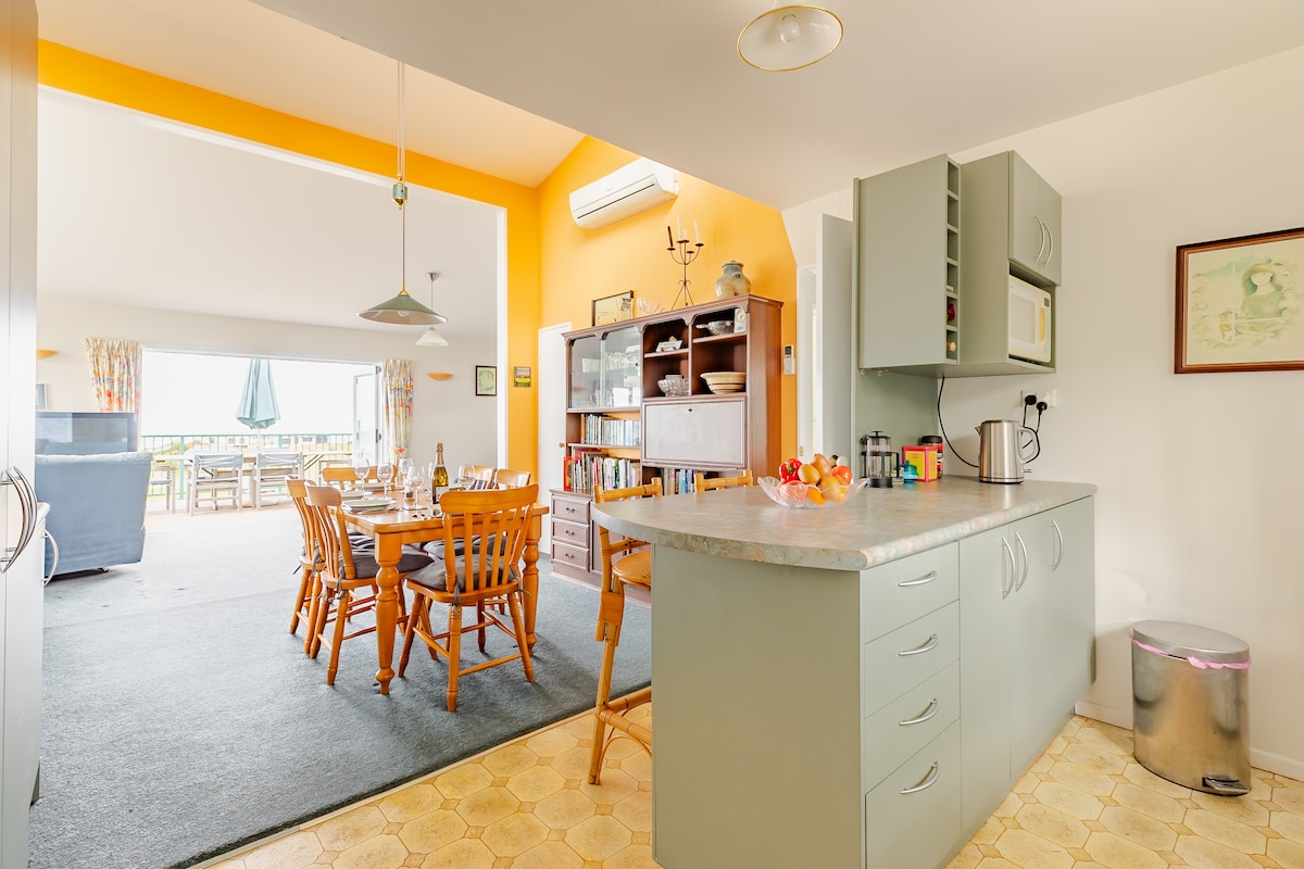 Not only are you beachfront but around the corner from the golf club and tennis courts. This wee gem is one of five holiday bachs, so respect of the other owners is premium, as is yours. You have your own very private, sun drenched sheltered deck with a bbq provided. A queen bed in one room, and a double and single in the other. The kitchen has all your essentials and even a dishwasher. There is a TV with a Chromecast, children's games, toys and videos are plentiful. Walk in and just relax.