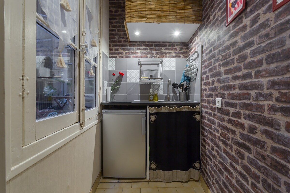 Place de la Trinité, atypical and warm apartment with terrace, always cool when it's hot outside in a small and very quiet Renaissance building. Living room with kitchen, bedroom, shower room, toilet. Place de la Trinité, atypical and cozy apartment with terrace, always cool when it's warm outside in a small and old Renaissance building, very quiet. Living room with kitchen, bathroom with shower and toilets.