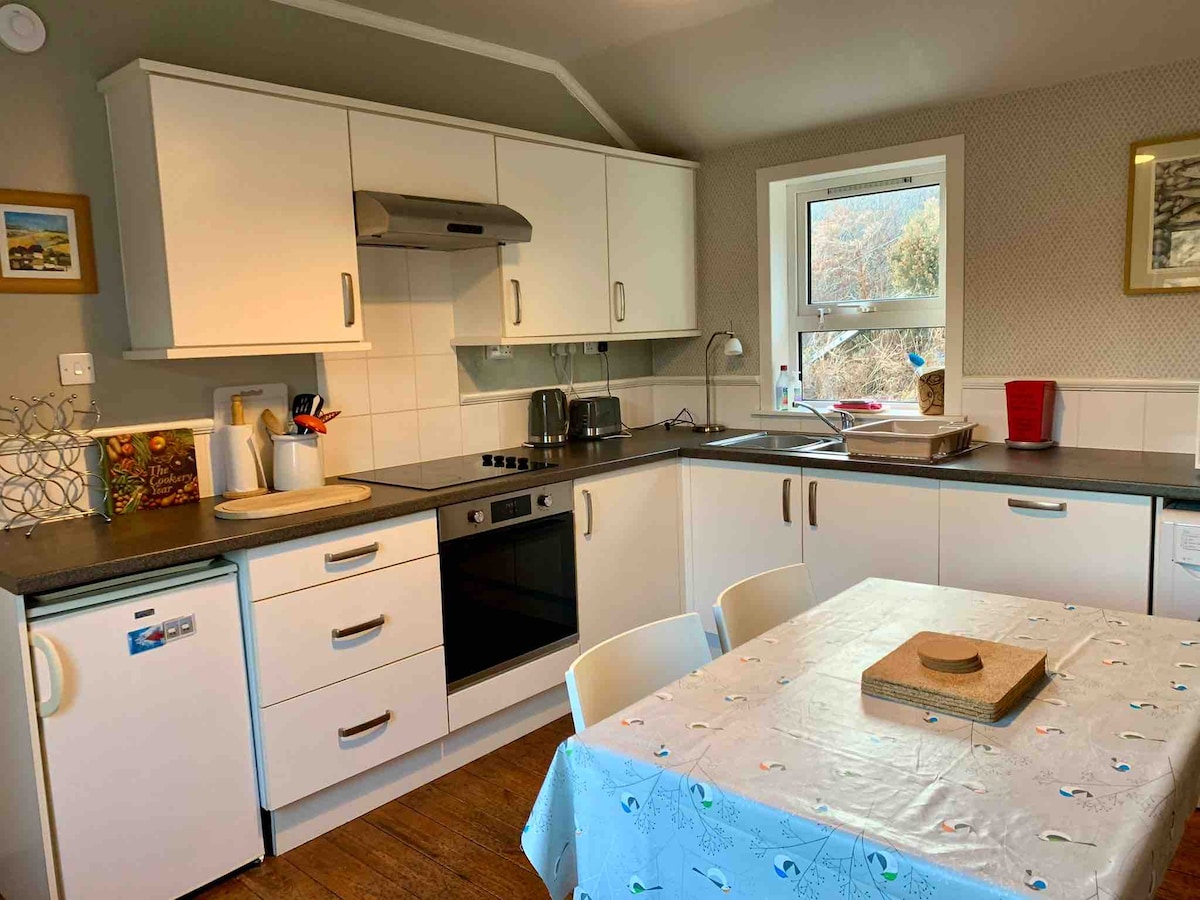 This unique place has a style all of its own. set on the top of a hill with stunning views over the sound of Sleat, taking in breathtaking views of the Isles of Eigg and Rum and in the distant the most westerly point of Scotland. Either sit and relax outside on the decking or down at the fire pit enjoying the peace and tranquility. Enjoy your relaxing break and cosy up inside with under floor heating through out and a warming glow from the log fire.