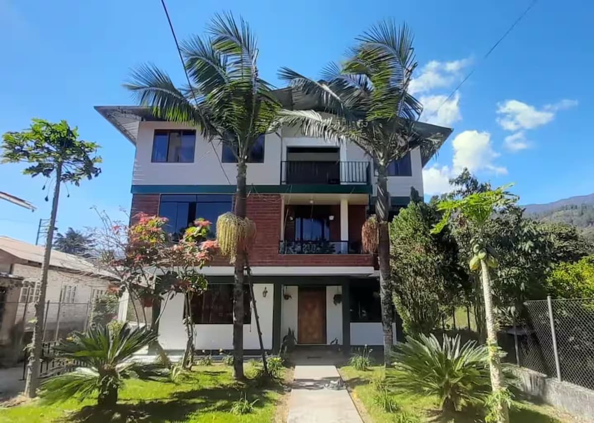 House in Oxapampa. Located 6 blocks from the city's central square We have 6 bedrooms, three bathrooms, two living rooms, equipped kitchen, grill area. We have parking for 2 trucks, large room on first and second floor, large garden. Wifi and security cameras 24/7 service.