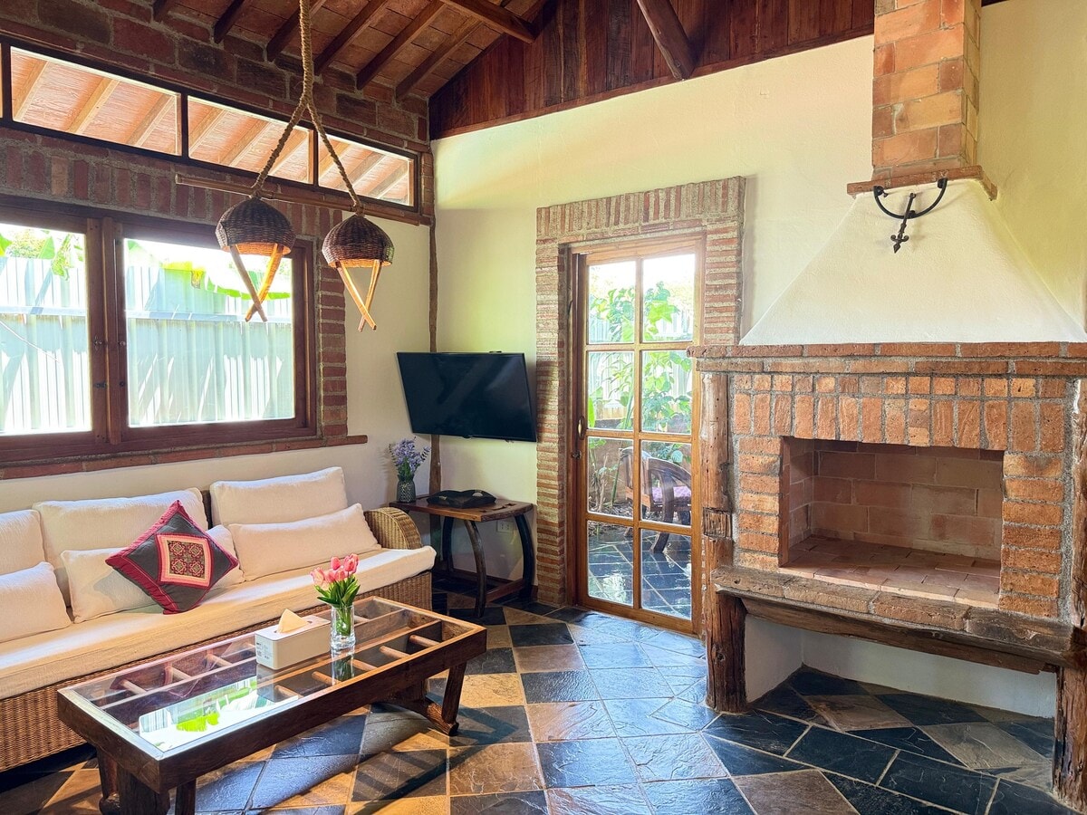 A warm, earth-tone brick house surrounded by nature and soft natural light. Perfect for couples or families seeking a peaceful retreat near Pai town. Close to Cafe, restaurant and easy access to the town center