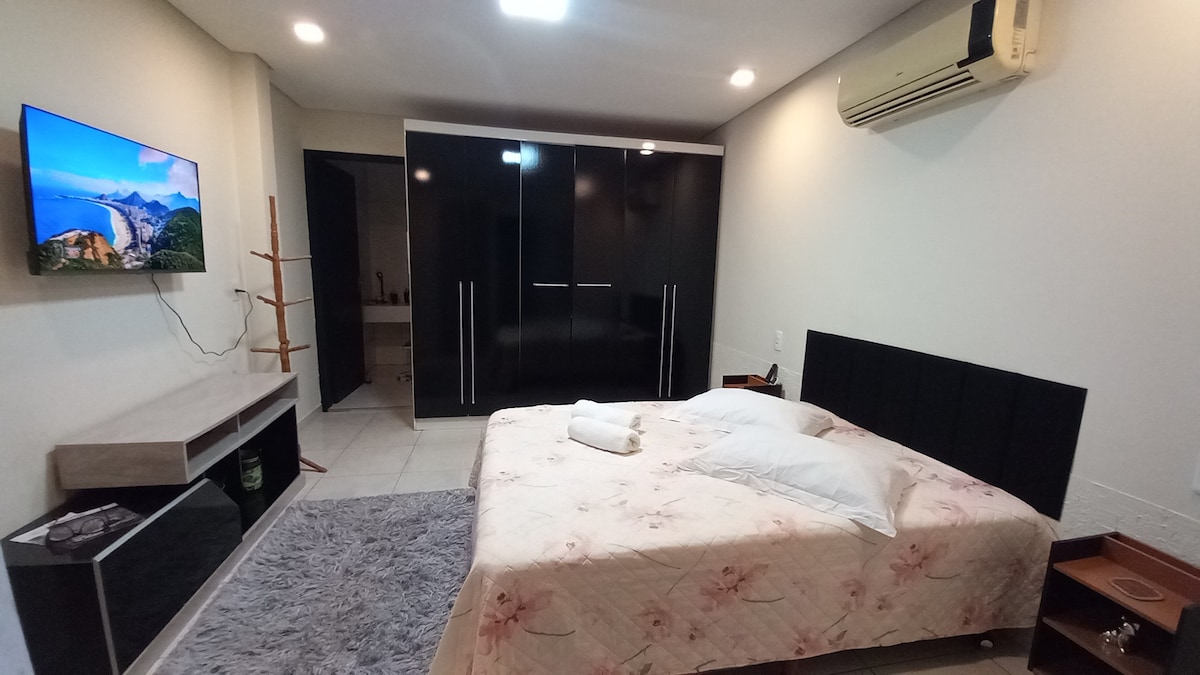 Comfortable accommodation, just 300 metres from the shopping centre and supermarket, with easy access to the region's beautiful beaches. Strategic location and great value for money for couples, families or friends. • Private space • 2 air conditioners • 1 bedroom + 1 sofa bed • Wifi and Smart TV • Full Kitchen • Washer • 1 open-air carport *Smoking is not permitted indoors.* *Pets: maximum 2. Must be specified in the app.* (Verification by external cameras.) *Check the pet policy!
