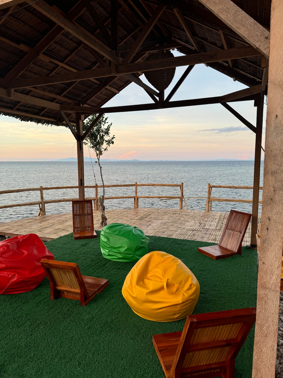 BALAY features a cozy lounging area with bean bags & native wooden chairs behind a 180° bamboo sunset / sunrise viewing area. The tranquil setting, enhanced by the gentle sea breeze and the soothing sounds of the waves, makes it a perfect escape from daily life. Just a 100-meter walk to the popular Paliton Beach, strong swimmers and snorkelers can also swim directly to the Paliton marine sanctuary, only 200 meters off the property, offering an immersive experience in natural beauty and serenity.