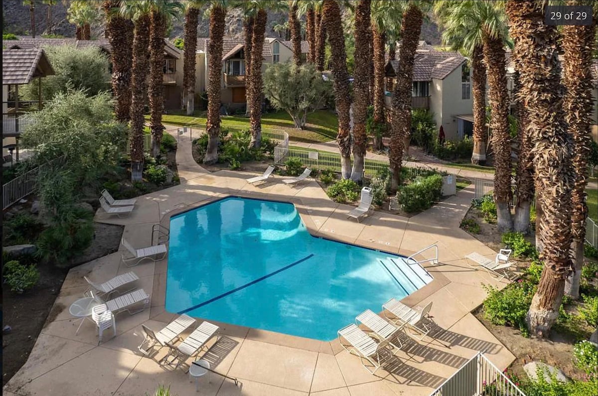 Welcome to La Quinta del Lago!! A peaceful space for you to enjoy. This sweet waterfront tiny home has gorgeous views of the mountains. It is the perfect place to come back to from exploring the desert! Newly remodeled, light bright space, high windows and ceilings. You can relax and enjoy yourself in the back patio, with a huge pine tree and peaceful view of the pond. Here, you can either start a tranquil day, or enjoy the romantic stared sky at night.