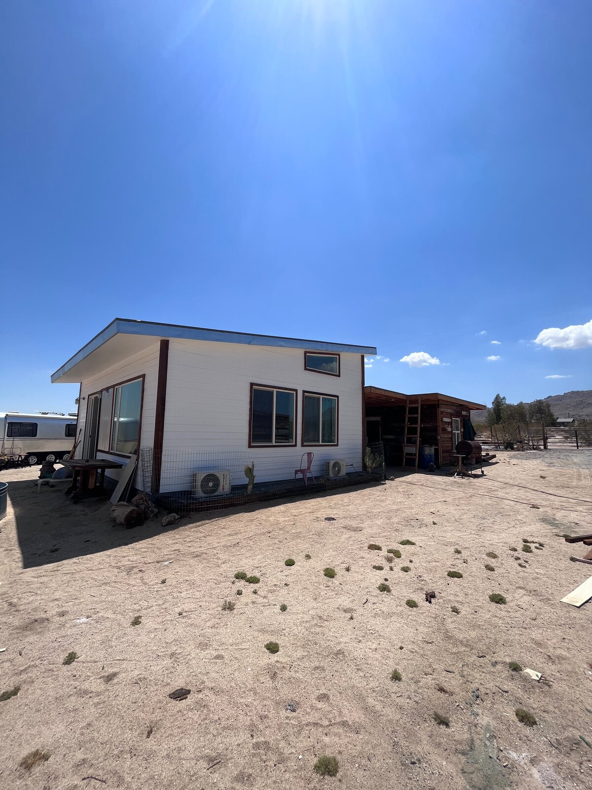 Modern desert cabin folded into 9 acres of boulders and brush. Coyotes pass like rumors. Quail patrol the mornings. Lizards claim the decks by noon. The architecture is clean, intentional plywood, steel, sky. Hot tub, outdoor shower, firepit, and Starlink (if the ravens allow it). Near Joshua Tree, the Integratron, and Pappy & Harriet’s. Featured in Dwell. Built for stillness. Permitted for it too: STVR 362-22.