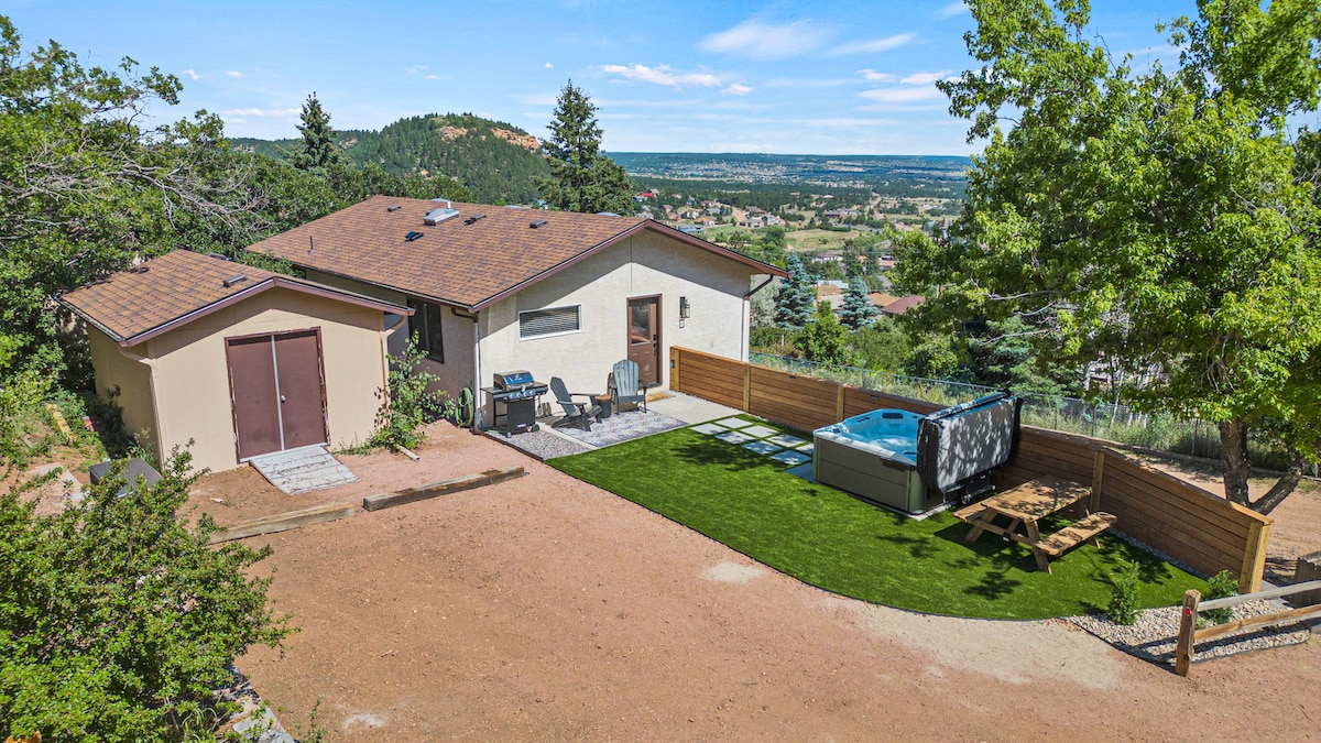 ★Location: 1 mi to Pinecrest Event Center, 20 mins to the Air Force Academy ★Outdoors: 0.7 mi to the lake for kayaking, 1 mi to hiking ★YARD: Fenced in w/fire pit, hot tub, hammock & games ★GARAGE w/kayaks & tennis rackets ★PORCH: Dining area, rocking chairs & grill ★FAMILY FRIENDLY: Pack n play, baby bath, high chair, baby monitors, toys! ★70" Smart TV in living room & 70" Smart TV in movie room w/Apps + Cable ★Fast Wifi ★Keyless Entry ★Comfortable beds ★Equipped kitchen ★Free Colorado beer