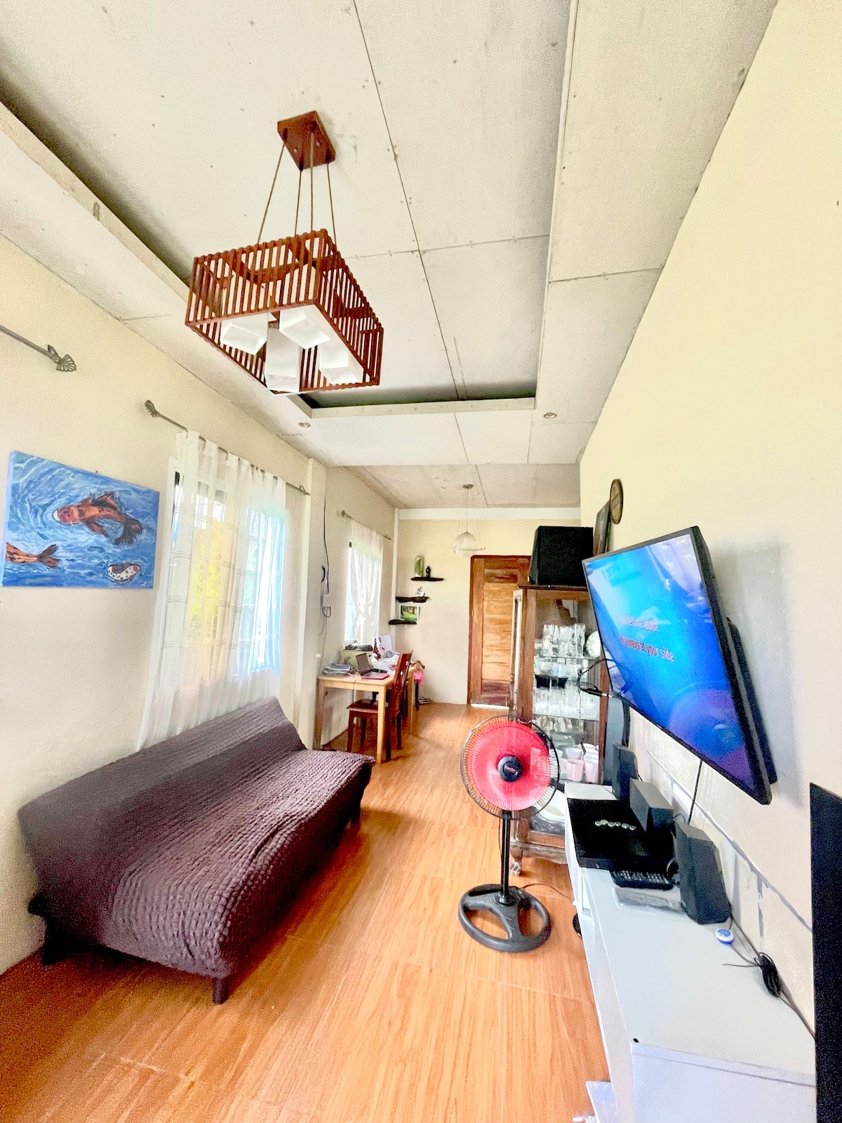 Newly built detached studio; located at the heart of a peaceful, clean, yet accessible town. ATM is located beside the property. The town plaza, market, resorts, restaurants, churches, fire station, health center, and police station are all in walking distance. Please take note that this is a detached studio pad with full functioning kitchen. This room is not by the road but you may hear noises like: dogs from neighbors. Other services: Food room service Laundry Transpo & tours Printing
