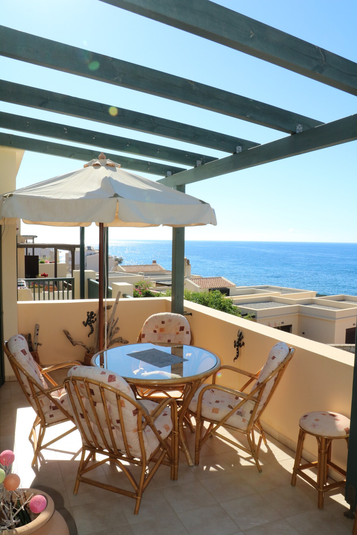 “Veranda Panormo”is an 80m2 fully equipped apartment, in the heart of the Cretan village surrounded by the sea, with 2 bedrooms and an open kitchen-dining-living room. One of the highlights is the spacious roof garden, easily accessible by internally stairs, with a panoramic view to the Aegean Sea, BBQ area, outdoor kitchen and comfortable sitting area . Enjoy one of the most impressive sunsets in this oasis of relaxations with drinks, watching the most beautiful view of the village.