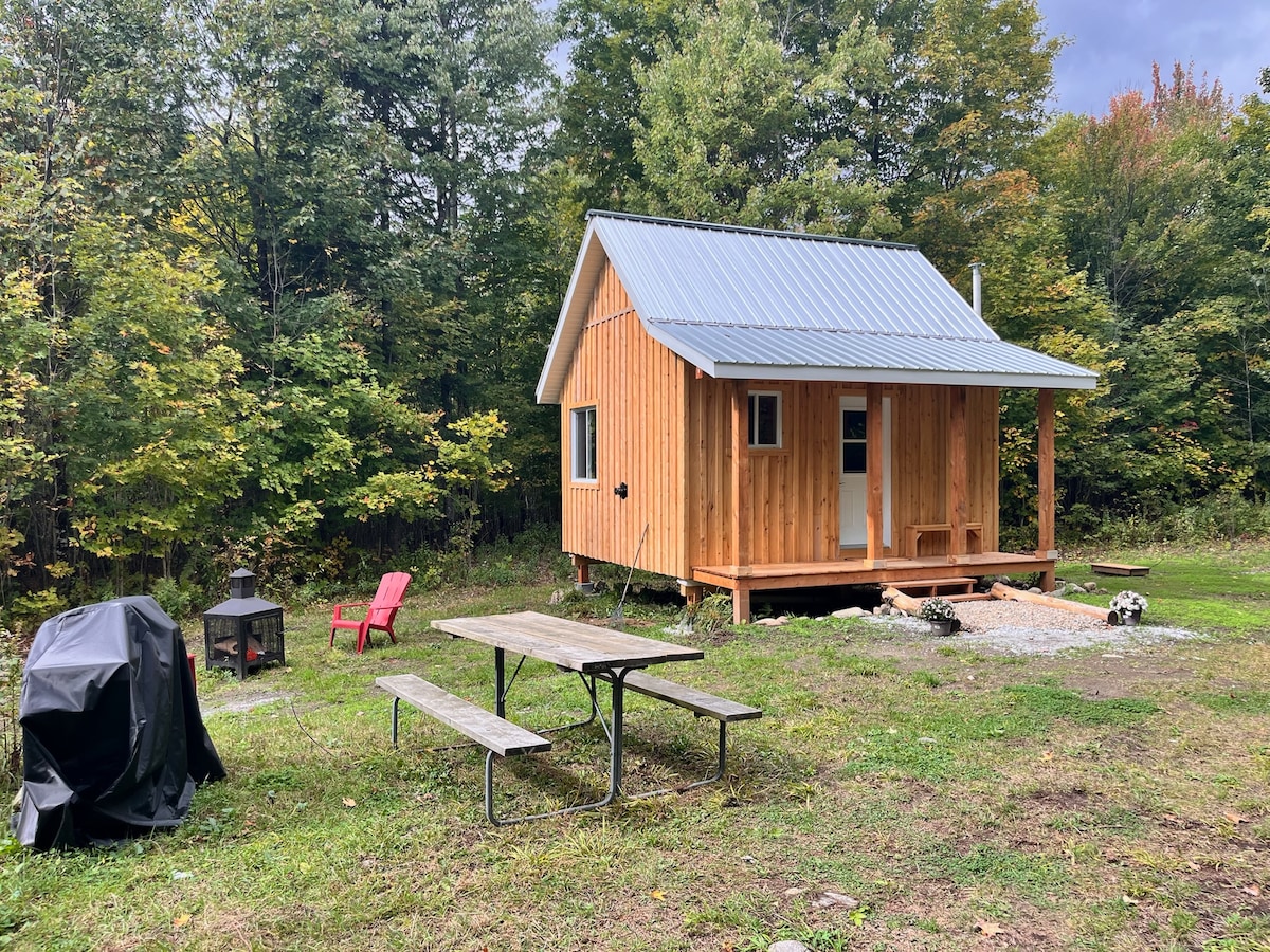 Welcome to La Khabine! This cozy, modern cabin comes with all you need to relax and connect with nature. Enjoy a glass of wine with the sound of a crackling fire in the wood burning fireplace. Take in the view of the forest through the surrounding floor to ceiling windows. Relax in the private outdoor cedar barrel sauna. Natural self-care products, firewood, laundry soap, and high-speed Wi-Fi are all complimentary. We hope you'll love our little cabin of windows as much as we do :)