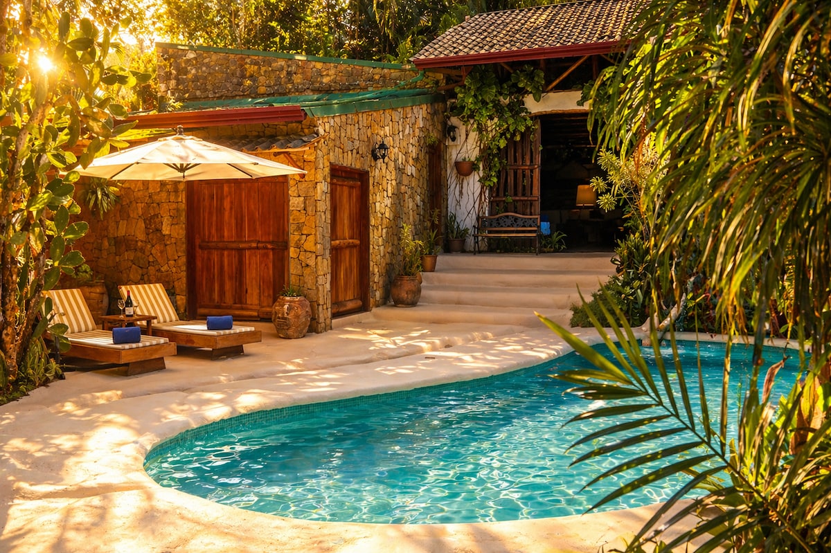 Surrounded by our carefully preserved native forest, this beautiful villa property is tucked off the beach, just steps from the town center of Santa Teresa. You can relax in the beachfront pool beneath the jungle canopy, or bask in the natural tide pools right out front! Enjoy everything you have ever dream of, from private starlit dinners on the beach to guided nature hikes, surfing and private chefs. We look forward to welcoming you into our community.